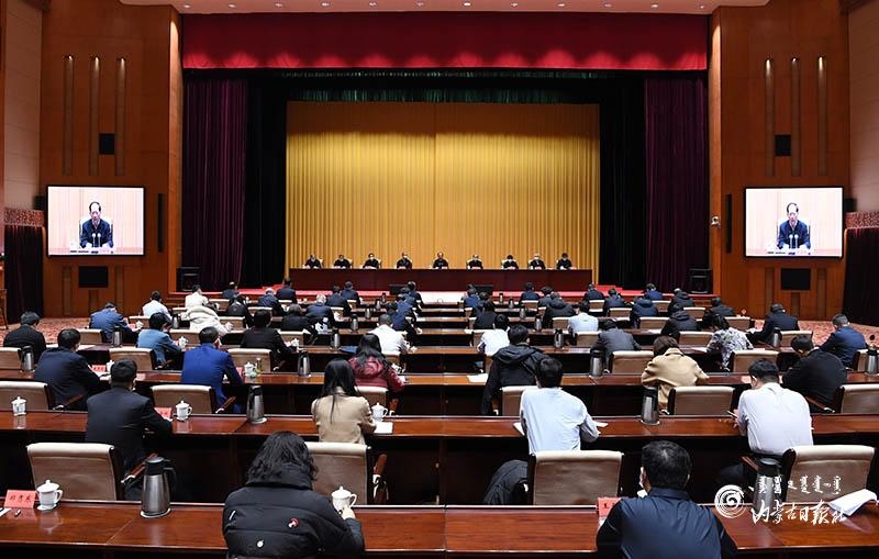 2月8日上午,自治區(qū)黨委常委、組織部長(zhǎng)楊偉東主持會(huì)議。內(nèi)蒙古日?qǐng)?bào)記者 袁永紅 攝