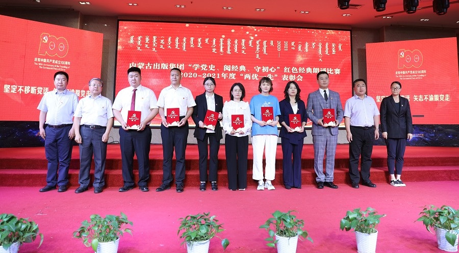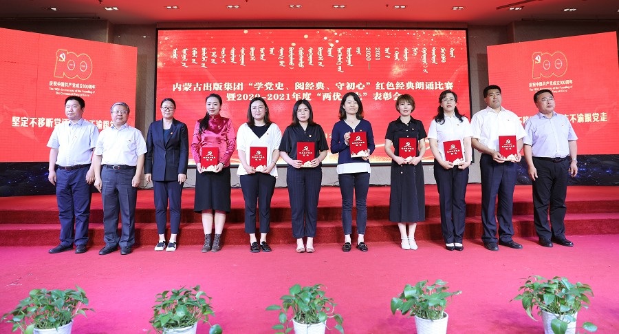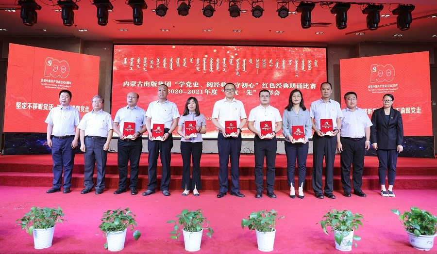 6月26日,內(nèi)蒙古出版集團(tuán)在維力斯大酒店舉辦“學(xué)黨史、閱經(jīng)典、守初心”紅色經(jīng)典朗誦比賽暨2020—2021年度“兩優(yōu)一先”表彰大會(huì)。內(nèi)蒙古出版集團(tuán)黨委書記、董事長雙龍,黨委副書記王富,黨委委員、副總經(jīng)理扎拉根,副總經(jīng)理王曉玲,總編輯助理黃滔,總經(jīng)理助理白玉峰等領(lǐng)導(dǎo)出席會(huì)議。