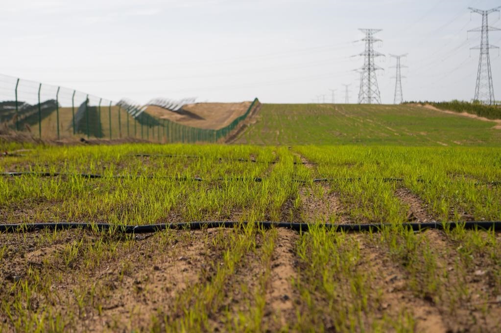 達(dá)拉特旗光伏發(fā)電應(yīng)用領(lǐng)跑基地的牧草。新華社記者 趙澤輝攝