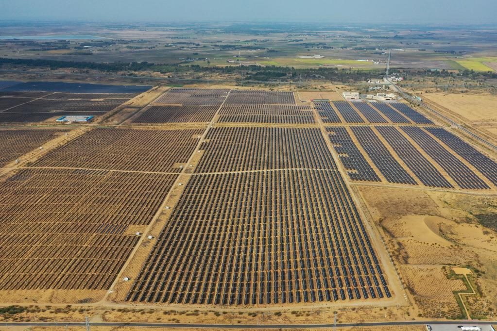 達(dá)拉特旗光伏發(fā)電應(yīng)用領(lǐng)跑基地(無人機照片)。新華社記者 李志鵬攝
