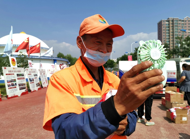 “這么熱的天氣,能給我們環(huán)衛(wèi)工人送來清涼包,太感謝了!”在呼和浩特回民區(qū)成吉思汗大街環(huán)衛(wèi)所做環(huán)衛(wèi)工作的張有義難掩高興的心情,立即打開清涼包中的小電風(fēng)扇,給自己先“清涼”一下。除了風(fēng)扇外,還有可在酷暑夏日為環(huán)衛(wèi)工人們提神醒腦的清涼油,以及可為他們?cè)趧趧?dòng)后第一時(shí)間保持手部衛(wèi)生的免洗洗手液,這些貼心的隨身用品無疑是在這個(gè)季節(jié)里對(duì)他們健康的最好關(guān)愛。