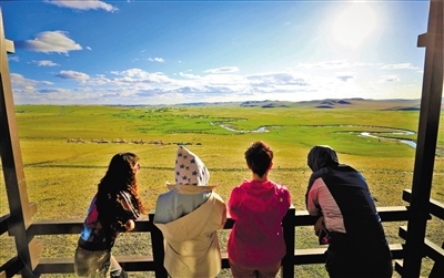 “秋天的草原更令人迷醉。絲絲涼風(fēng),清爽宜人,湛藍(lán)天空,明靜高遠(yuǎn),柔美蜿蜒的莫日格勒河,悠然自得的牧馬生活,最讓我難忘的是呼倫貝爾的綠。”大連的王女士帶著父母和孩子自駕游呼倫貝爾,從森林到草原,一路尋綠穿行。
