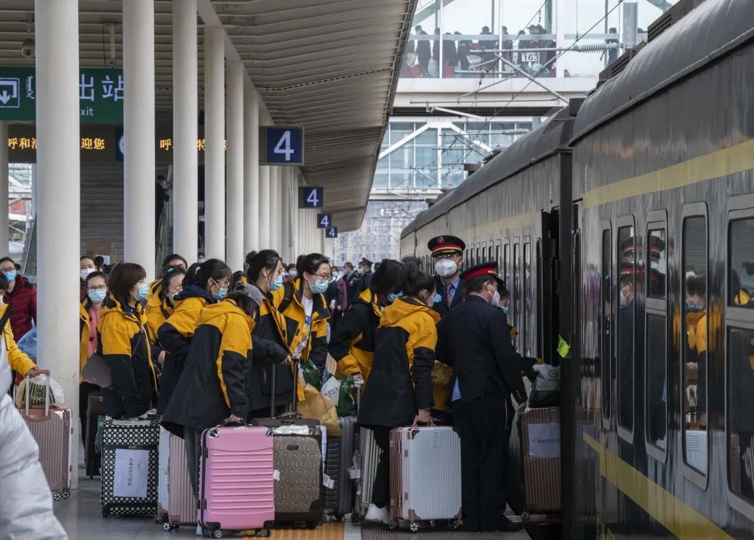 為此,呼和浩特站開辟了專門的候車區(qū)域、綠色通道,指派專人負責醫(yī)務(wù)人員乘車和物資搬運。