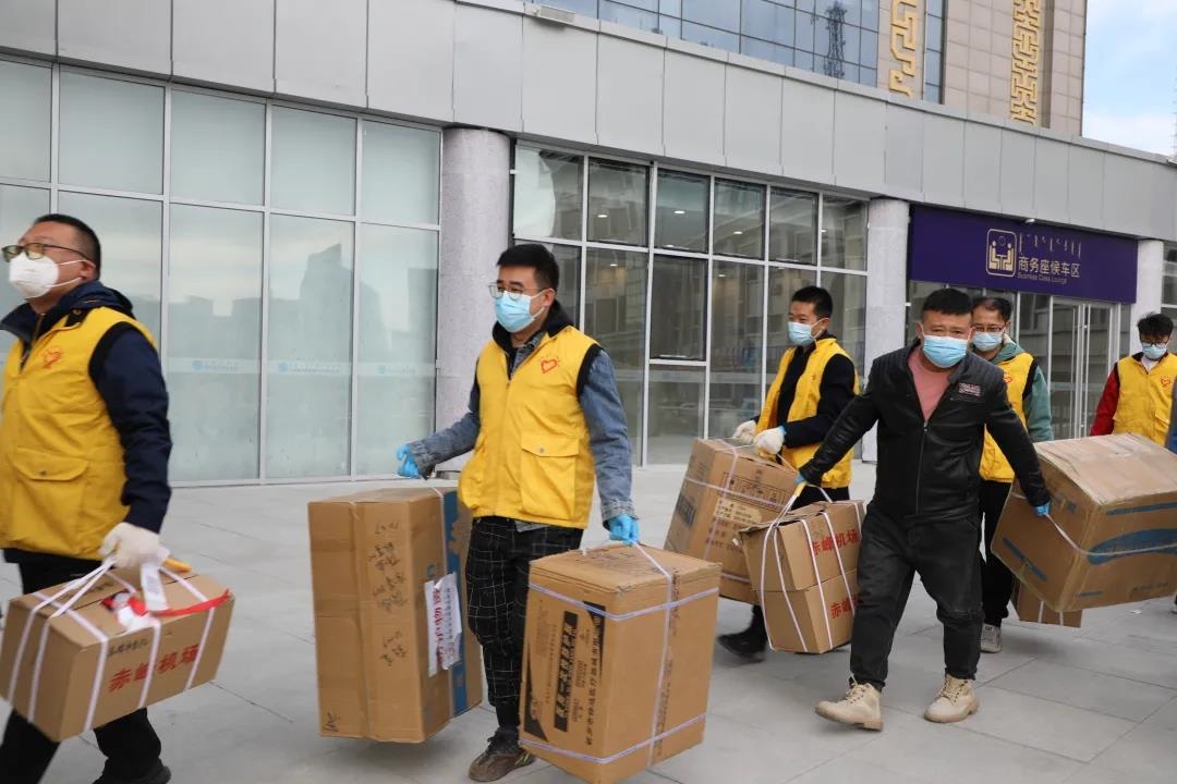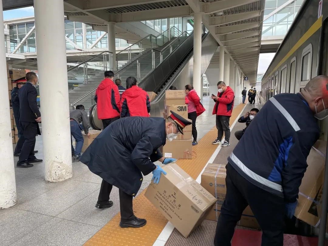 為保障防疫物資裝車效率,呼和浩特貨運中心緊急組織28名青年志愿者,協(xié)助完成專列防疫物資搶運任務(wù)。