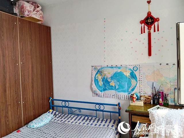 在對(duì)原有住房進(jìn)行規(guī)劃、設(shè)計(jì)后,施工隊(duì)開始裝修,并配備必要的家具、臥具和學(xué)習(xí)生活用品。歷時(shí)半個(gè)多月,一間以藍(lán)色為主色調(diào)的小屋建成了。現(xiàn)在,屬于浩博的那一半臥室,泛黃的臥室墻壁被粉刷成淡藍(lán)色,換了新的小床和衣柜,新添置的書桌上擺滿了課外書,看起來整潔又溫馨。