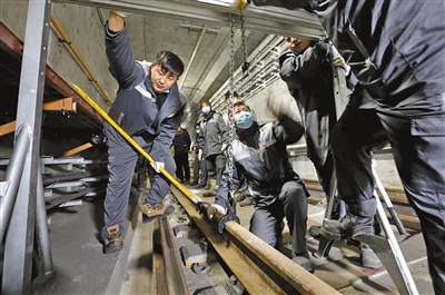 “我們的日常工作主要是對地鐵軌道線路進(jìn)行周期性檢查和計劃性維修,確保地鐵軌道設(shè)備狀態(tài)良好,保證電客車在線路上安全、平穩(wěn)、不間斷運(yùn)行。”田智宏對記者說:“維修對象主要是鋼軌和道岔,通過我們的起、撥、改等作業(yè),使得軌道幾何形位保持在標(biāo)準(zhǔn)值范圍內(nèi)?!?/p>