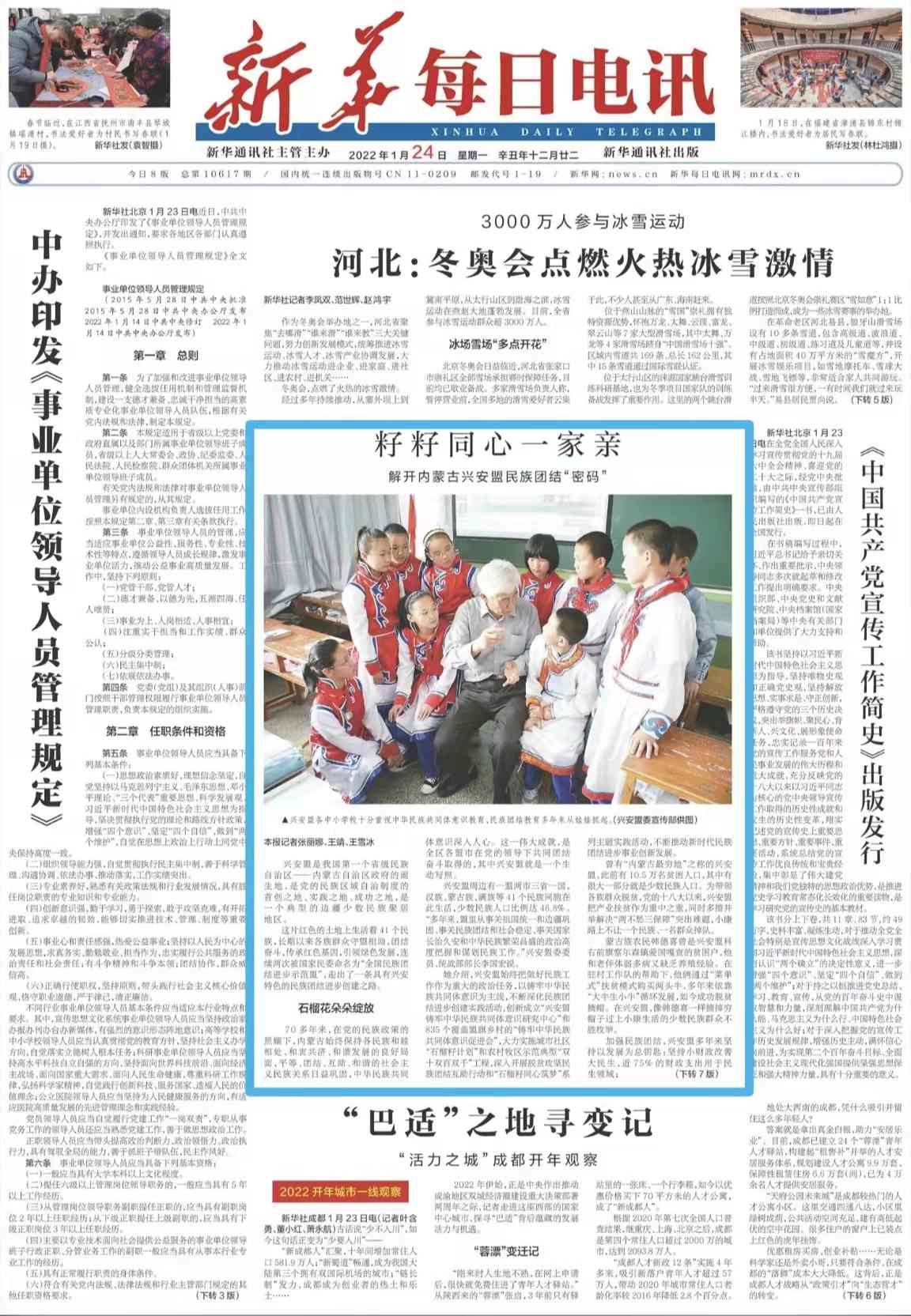 她介紹,興安盟始終把做好民族工作作為重大的政治任務(wù),以鑄牢中華民族共同體意識(shí)為主線,不斷深化民族團(tuán)結(jié)進(jìn)步創(chuàng)建實(shí)踐活動(dòng),創(chuàng)新成立“興安盟鑄牢中華民族共同體意識(shí)研究中心”和835個(gè)覆蓋盟旗鄉(xiāng)村的“鑄牢中華民族共同體意識(shí)促進(jìn)會(huì)”,大力實(shí)施城市社區(qū)“石榴籽計(jì)劃”和農(nóng)村牧區(qū)示范典型“雙十雙百雙千”工程,深入開展脫貧攻堅(jiān)民族團(tuán)結(jié)互助行動(dòng)和“石榴籽同心筑夢”系列主題實(shí)踐活動(dòng),不斷推動(dòng)新時(shí)代民族團(tuán)結(jié)進(jìn)步事業(yè)創(chuàng)新發(fā)展。