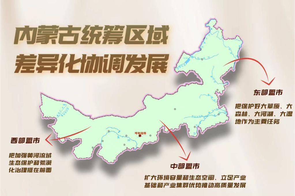 近年,內蒙古按照主體功能區(qū)定位統(tǒng)籌區(qū)域差異化協(xié)調發(fā)展:東部盟市把保護好大草原、大森林、大河湖、大濕地作為主要任務;中部盟市擴大環(huán)境容量和生態(tài)空間、立足產(chǎn)業(yè)基礎和產(chǎn)業(yè)集群優(yōu)勢推動高質量發(fā)展;西部盟市把加強黃河流域生態(tài)保護和荒漠化治理挺在前面。