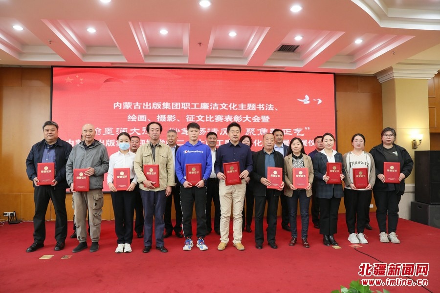 北疆新聞網(wǎng)、北疆新聞APP、北疆云消息(記者 張楊)9月22日,內(nèi)蒙古出版集團(tuán)職工廉潔文化主題書(shū)法、繪畫(huà)、攝影、征文表彰大會(huì)暨“翰墨潤(rùn)大德、妙筆揚(yáng)清風(fēng)、聚焦弘正氣”內(nèi)蒙古出版集團(tuán)迎接黨的二十大職工廉潔文化作品展開(kāi)展儀式在集團(tuán)二樓舉行。自治區(qū)紀(jì)委監(jiān)委駐黨委宣傳部紀(jì)檢監(jiān)察組二級(jí)巡視員聶榮峰,集團(tuán)黨委書(shū)記、董事長(zhǎng)雙龍和出版集團(tuán)在家領(lǐng)導(dǎo)班子成員、在呼各單位班子成員、集團(tuán)總部全體、各單位獲獎(jiǎng)?wù)叽淼葏⒓颖碚么髸?huì)并觀看展出,集團(tuán)黨委副書(shū)記王富主持表彰大會(huì)。