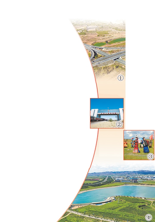 圖②:“二連號(hào)”中蒙寬軌集裝箱專列駛出內(nèi)蒙古自治區(qū)二連浩特國門,開往蒙古國烏蘭巴托。