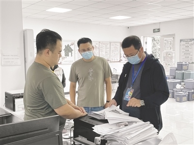 李杰(右)到社區(qū)實地查看疫情防控重點人員檔案。