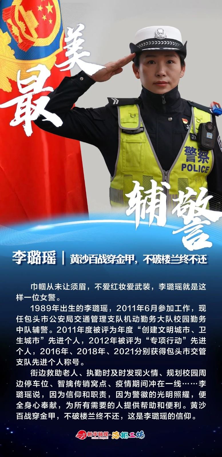 “不同的肩章,同樣的堅(jiān)守……”在“感動(dòng)北疆·最美輔警”獲獎(jiǎng)?wù)咧校?strong>有堅(jiān)守忠誠(chéng)的安全衛(wèi)士郭一鳴,對(duì)癥下藥的老片兒警康華,服務(wù)群眾的熱心人辛永紅,校園安全的“護(hù)航員”李璐瑤,社區(qū)警務(wù)“信息化管家”鄭威,警務(wù)支撐“小能手”胡建業(yè),110接處警“活地圖”劉順峰,網(wǎng)上巡查“質(zhì)檢員”王昊,基層交通安全“好聲音”劉巖,一線“智慧公安”排頭兵張?zhí)睢?/strong>