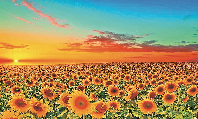 全國葵花籽產(chǎn)量約70%來自內(nèi)蒙古。圖為巴彥淖爾市向日葵種植區(qū)。 內(nèi)蒙古日報(bào)社供圖