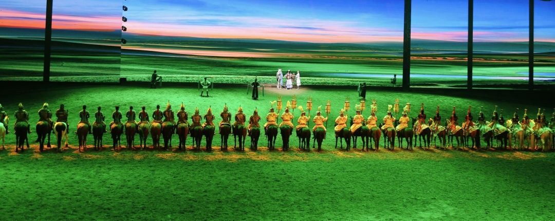 濃墨重彩的林海,遼闊無(wú)邊的沙漠,金燦燦的胡楊林,9月的內(nèi)蒙古正是夏季的繁茂與秋季的華彩交融之際,處處斑斕、極致秋色的自然美景,讓人流連忘返。而在呼和浩特市上演著一幕壯闊絕美的獨(dú)特“美景”,讓人充分體會(huì)到濃濃的草原風(fēng)情和壯闊的奮斗歷程,這就是經(jīng)典馬舞劇——《千古馬頌》。