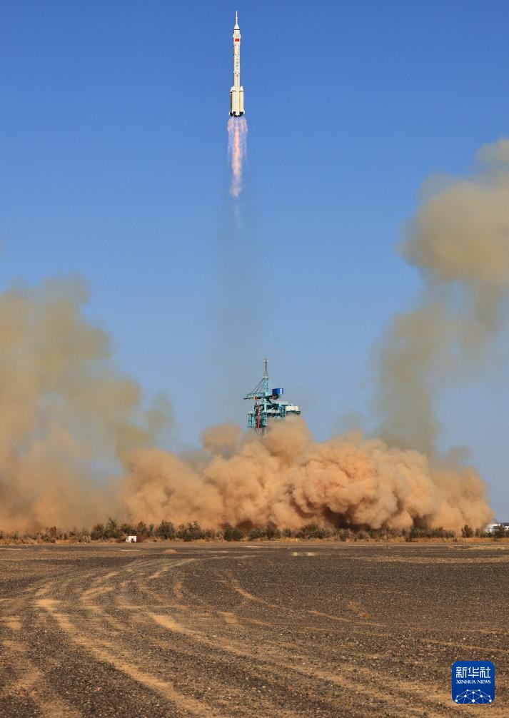 10月26日11時14分,搭載神舟十七號載人飛船的長征二號F遙十七運載火箭在酒泉衛(wèi)星發(fā)射中心點火發(fā)射。約10分鐘后,神舟十七號載人飛船與火箭成功分離,進入預定軌道,航天員乘組狀態(tài)良好,發(fā)射取得圓滿成功。新華社記者 連振 攝