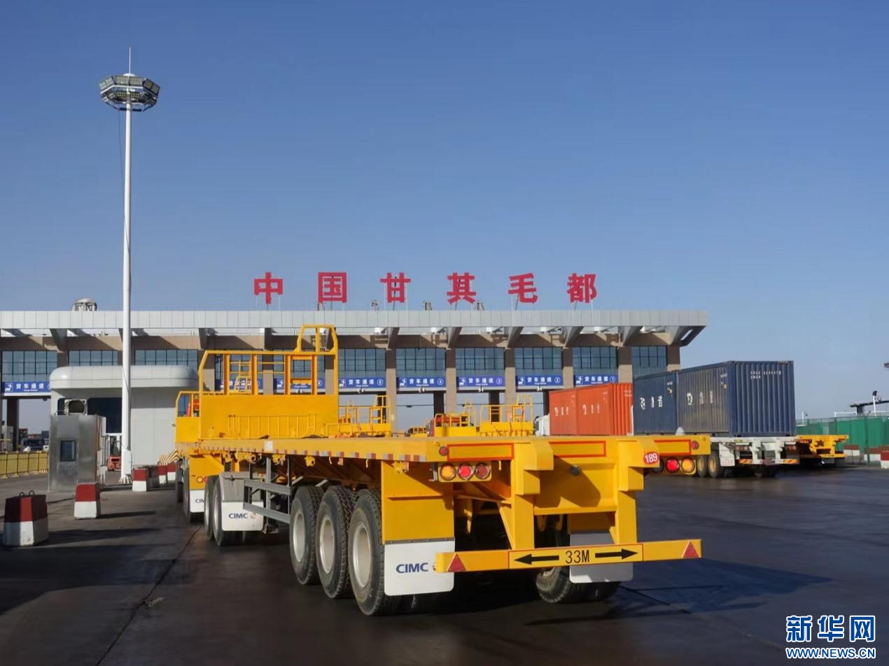 大卡車駛過(guò)珠恩嘎達(dá)布其口岸。資料圖 ??