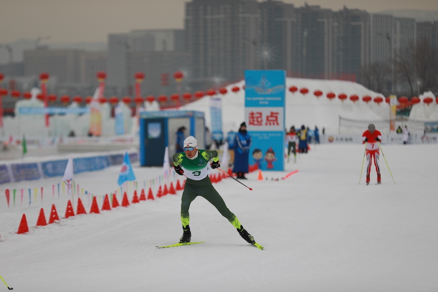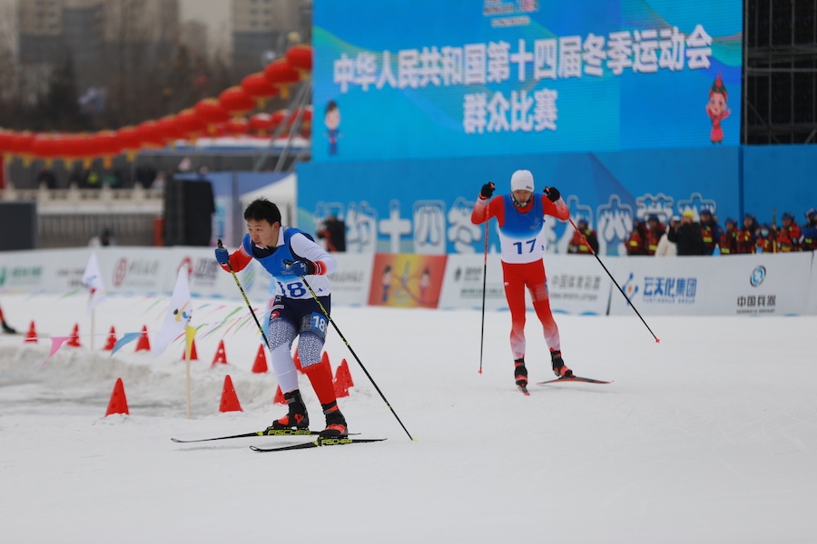 1月13日,“十四冬”群眾比賽在呼和浩特東河冰場(chǎng)開賽。在上午進(jìn)行的男子越野滑雪4*1.5km預(yù)賽中,內(nèi)蒙古代表隊(duì)獲得小組第二。