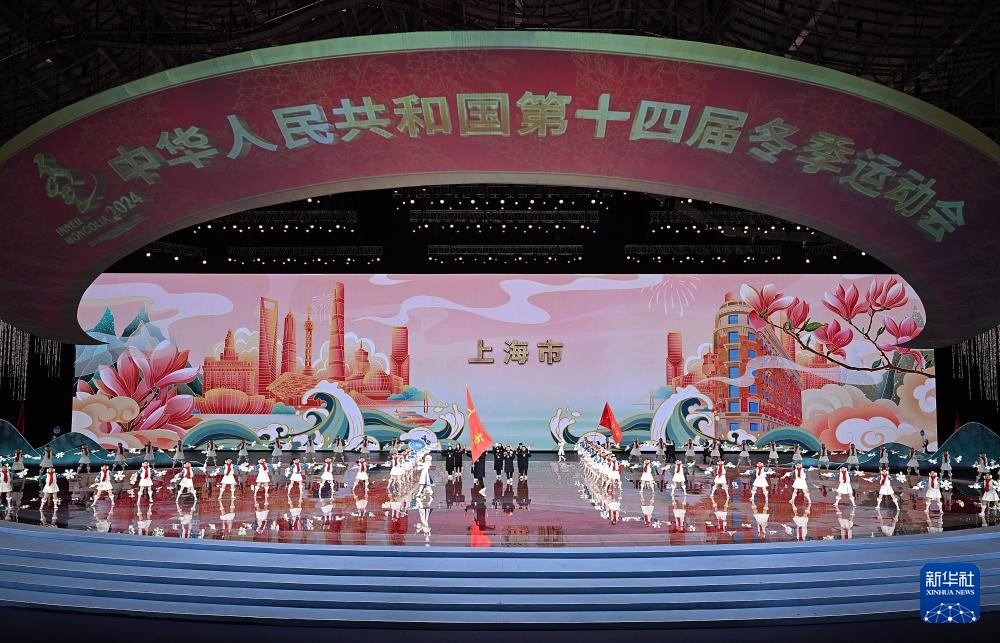 ??2月17日,中華人民共和國第十四屆冬季運(yùn)動(dòng)會(huì)會(huì)旗入場。新華社記者 連振 攝