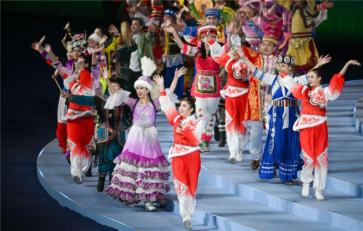 其中文體展演包括序篇《共同的家園》、主篇章《山河共錦繡》《冰雪共相約》《攜手共奮進》和尾聲《共同的未來》,展演將中國風(fēng)范、民族特色、北疆韻味、運動活力通過科技手段創(chuàng)意呈現(xiàn),在傳承與創(chuàng)新的碰撞下,展現(xiàn)了草原文化、冰雪文化和民族文化的多彩魅力。