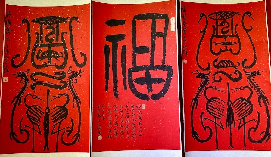 “媽媽我又認(rèn)識了一個‘?!郑瓉碓?jié)也要貼‘?!郑€要貼吉祥的畫,我還要和玉兔一起吃元宵?!?歲的陳昭穎參觀完百福迎春賀歲作品展后因?yàn)檎J(rèn)識一個“福”字開心地說。