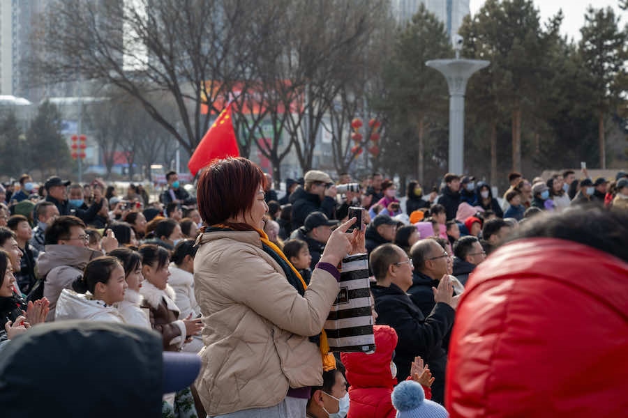 2月23日下午,在內(nèi)蒙古呼和浩特寶鼎廣場(chǎng),市民游客拿著燈謎卡來(lái)到禮品兌換區(qū),興奮不已地排隊(duì)等待著。