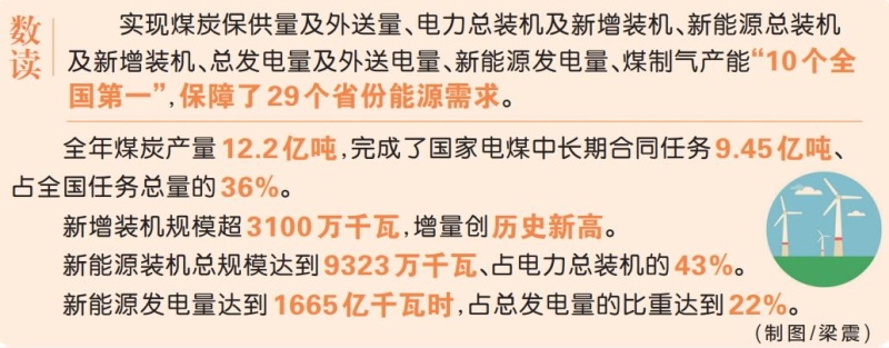 這一年,內(nèi)蒙古堅決服從服務(wù)國家大局,全力抓好能源穩(wěn)產(chǎn)保供。全年煤炭產(chǎn)量12.2億噸,完成了國家電煤中長期合同任務(wù)9.45億噸、占全國任務(wù)總量的36%,外送煤炭7.2億噸、外送電量3065億千瓦時。