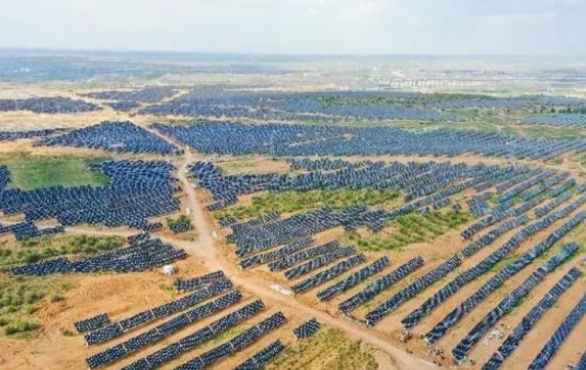 在內(nèi)蒙古的全球最大規(guī)?!吧掣昊摹憋L(fēng)電光伏基地項(xiàng)目。