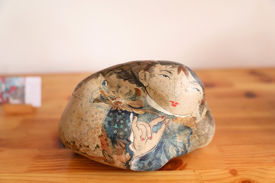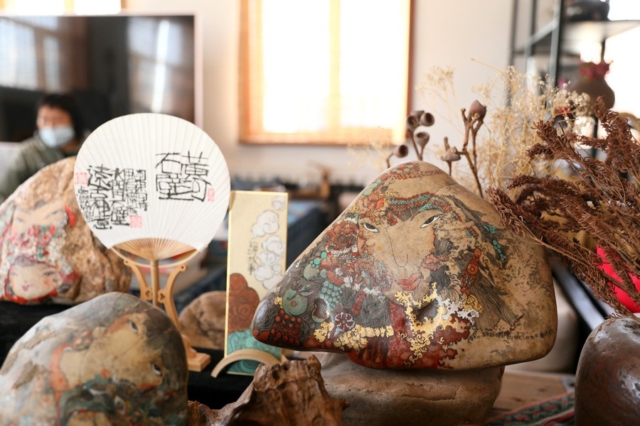自2016年起,魯婷開始用黃河石畫的形式,講述母親河的故事。2018年,魯婷在西行客棧建立了自己的工作室,向社會各界免費(fèi)開放,用黃河石彩繪的方式,為北疆文化注入新的思想和內(nèi)涵。