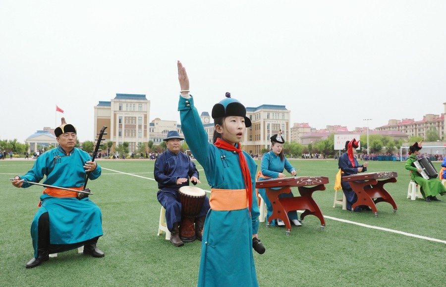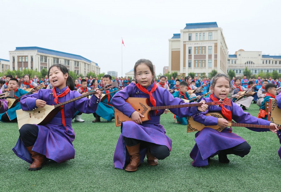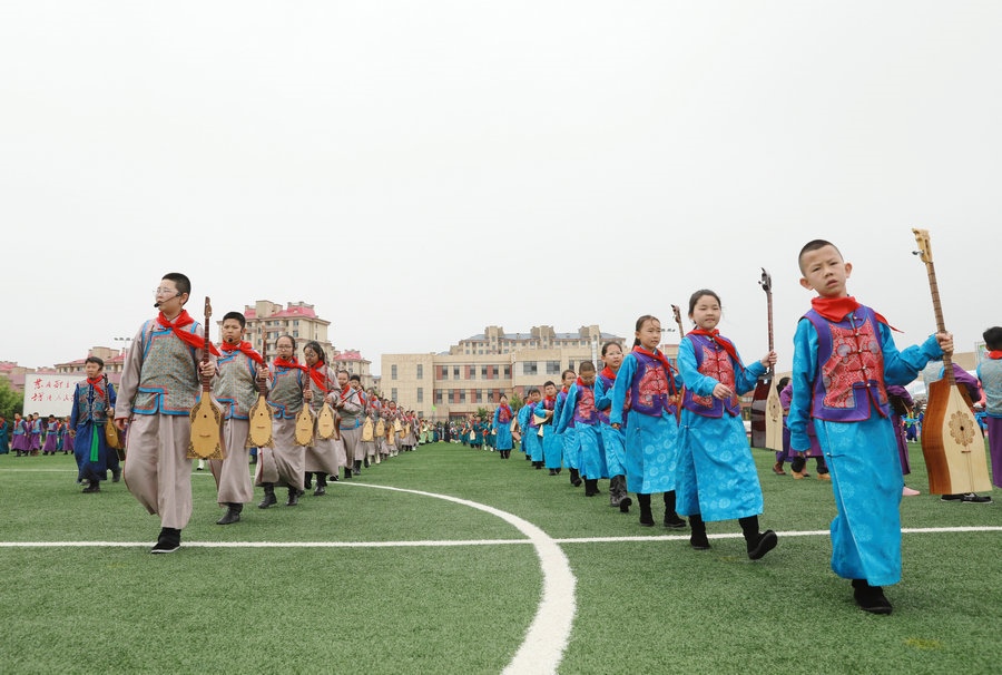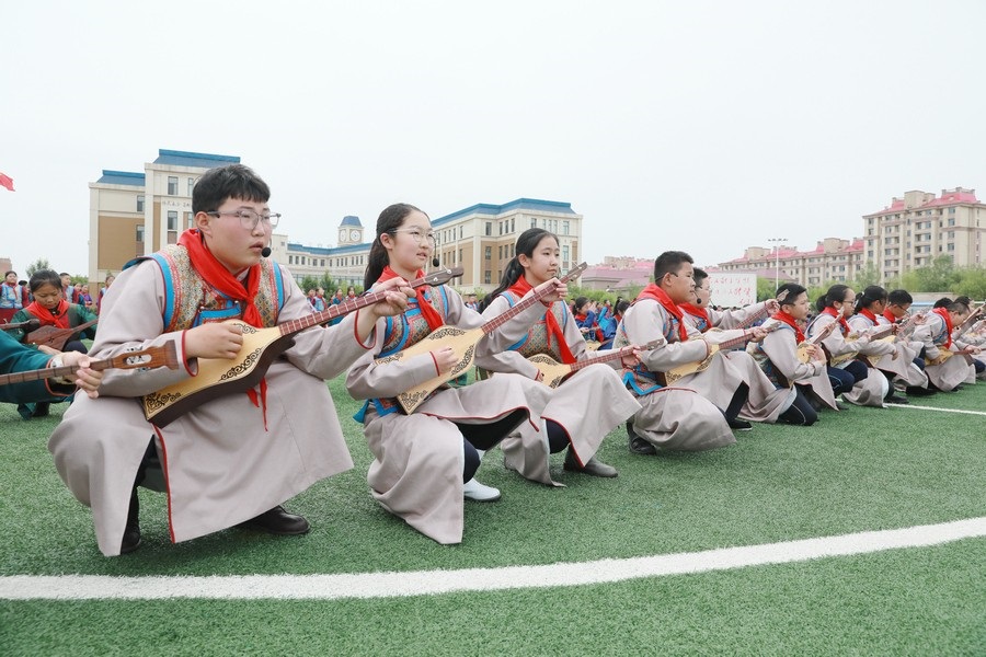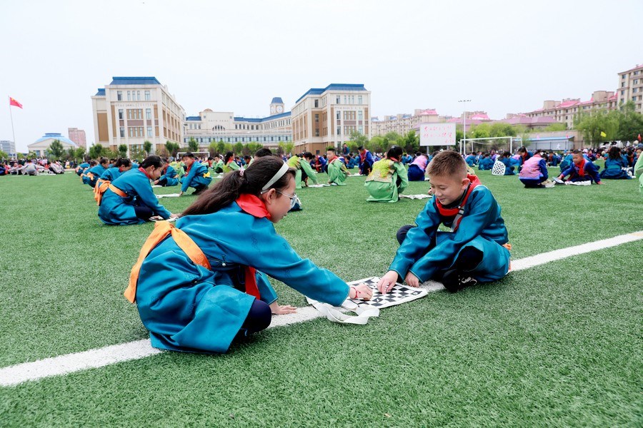 “今天參加4個(gè)‘千人文化’特色課程感到非常高興和開(kāi)心。這4個(gè)課程讓我們的文化素養(yǎng)得到質(zhì)的提升,愉悅了身心?!蔽迥昙?jí)125班的哈斯寶勒爾剛剛參加完特色課程展示。哈斯寶勒爾表示,這4個(gè)課程,比如玩象棋的話,可以提升自己的思維邏輯,讓自己的思路更加清晰,能夠提升學(xué)習(xí)成績(jī);練習(xí)筷子舞,可以讓我們的心情變得更加愉悅,通過(guò)練習(xí)跳舞,讓我們身體的柔韌性更強(qiáng);唱江格爾,能鍛煉我們的唱歌能力,還能讓我們把非物質(zhì)文化遺產(chǎn)傳承下去;踢足球可以鍛煉我們的體能。