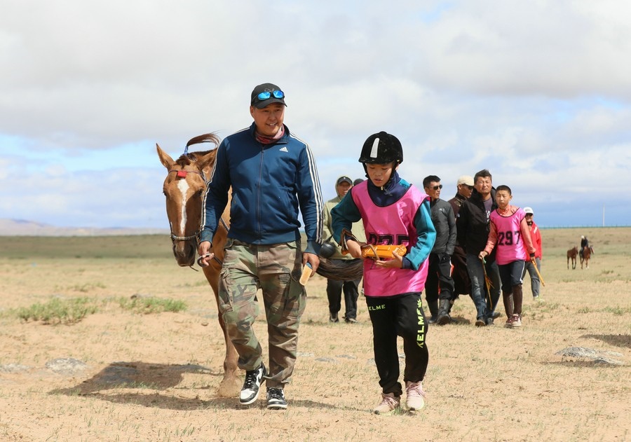 7月16日上午,內(nèi)蒙古自治區(qū)第34屆草原那達(dá)慕24公里賽馬,在錫林浩特希日塔拉草原舉行。來自蘇尼特右旗的13歲少年安琪爾,騎乘叔叔青格勒家的新6歲馬,在最后百余米沖刺階段,超越對手獲得冠軍。