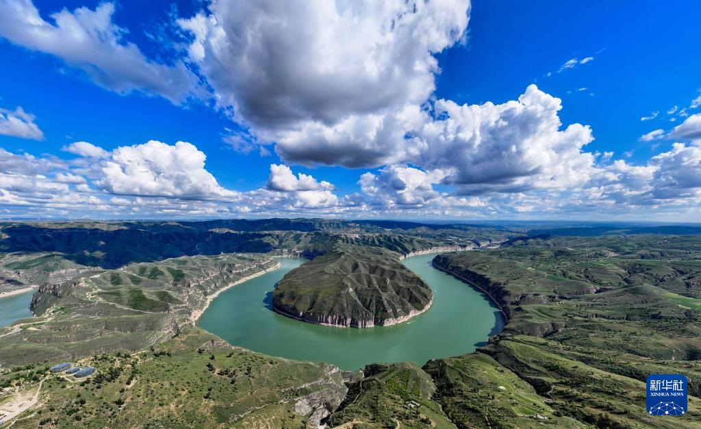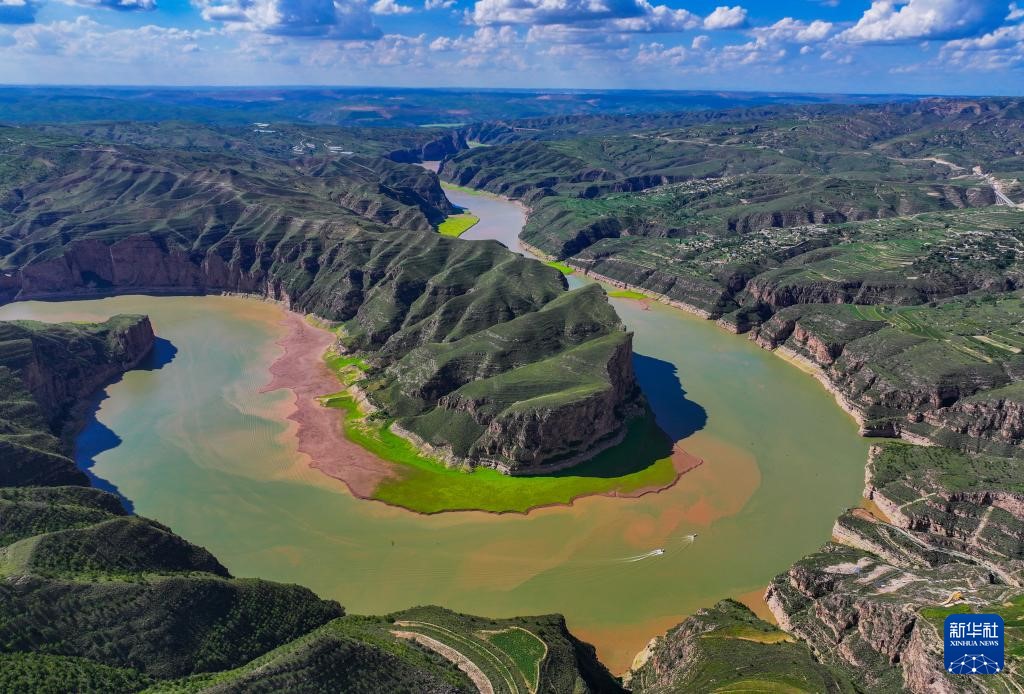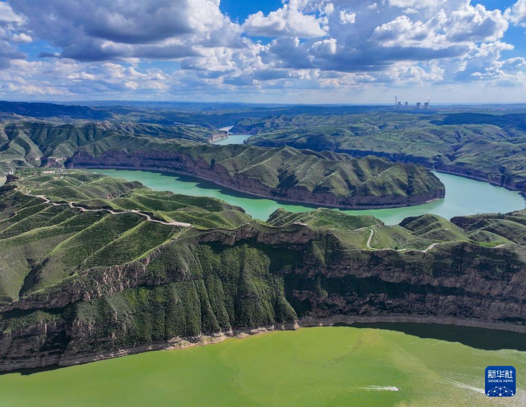 ??這是8月12日拍攝的黃河老牛灣風(fēng)光(無人機照片)。