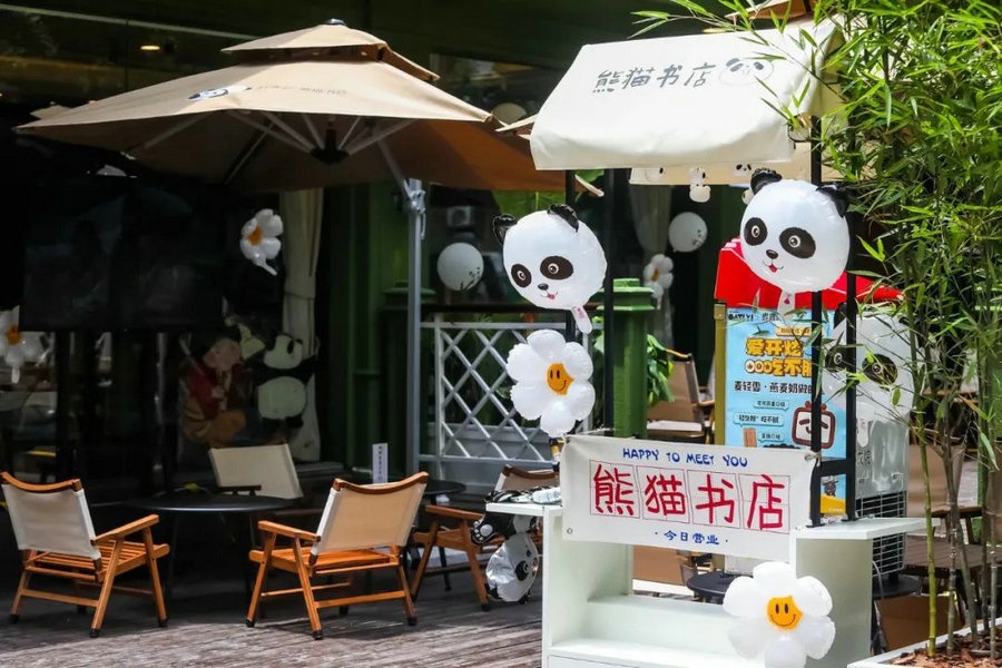 熊貓書店,是新華文軒的主題書店,以“歡迎年輕的旅者和心動的靈魂”為理念,服務(wù)于本地年輕讀者與外地游客。熊貓書店內(nèi)匯聚了齊全的熊貓相關(guān)圖書、超多必買的熊貓主題文創(chuàng)和首家竹林里的熊貓主題飲品。店外的休閑區(qū)融入了露營元素,打造成一片自然繾綣、充滿綠意的竹林,讀者、游客來此小坐飲茶,與綠意共憩,與熊貓共語,感受寧靜與治愈。