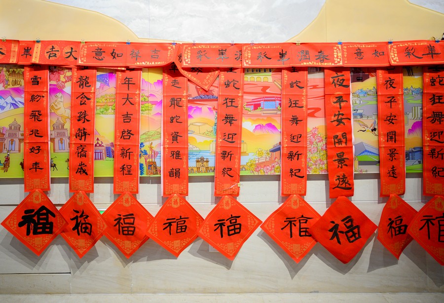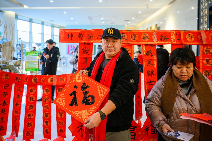 1月15日,呼和浩特市城市展示中心一樓大廳洋溢著濃濃的節(jié)日氛圍,“美麗青城·多彩非遺”——翰墨送?!は灿麓?2025寫春聯(lián)、迎新春主題活動正在這里舉行。