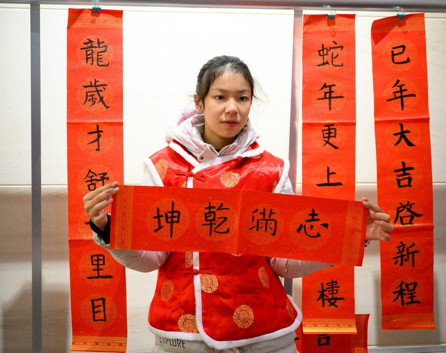 展示寫好的春聯(lián)