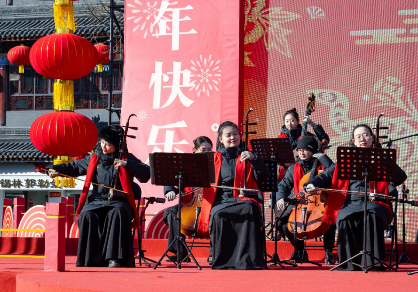 2月12日上午,在呼和浩特大召?gòu)V場(chǎng)上,“新民樂(lè)”音樂(lè)會(huì)精彩上演,傳統(tǒng)民樂(lè)與現(xiàn)代音樂(lè)交織融合,為觀眾帶來(lái)一場(chǎng)別具一格的聽(tīng)覺(jué)盛宴。