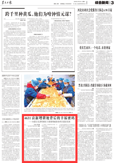 2025年2月24日,《農(nóng)民日?qǐng)?bào)》第3版刊發(fā)題為《4631畝新增耕地背后的幸福密碼——內(nèi)蒙古扎賚特旗好力保鎮(zhèn)增減掛鉤項(xiàng)目建設(shè)見聞》的文章,報(bào)道了內(nèi)蒙古興安盟扎賚特旗好力保鎮(zhèn)以土地整治為突破口,創(chuàng)新實(shí)施“五型安置”模式,讓水田村、先鋒村等4個(gè)行政村16個(gè)自然屯的898戶村民實(shí)現(xiàn)從“憂居”到“優(yōu)居”的跨越,村民過(guò)上了“出門種地,回家住樓”的新生活。