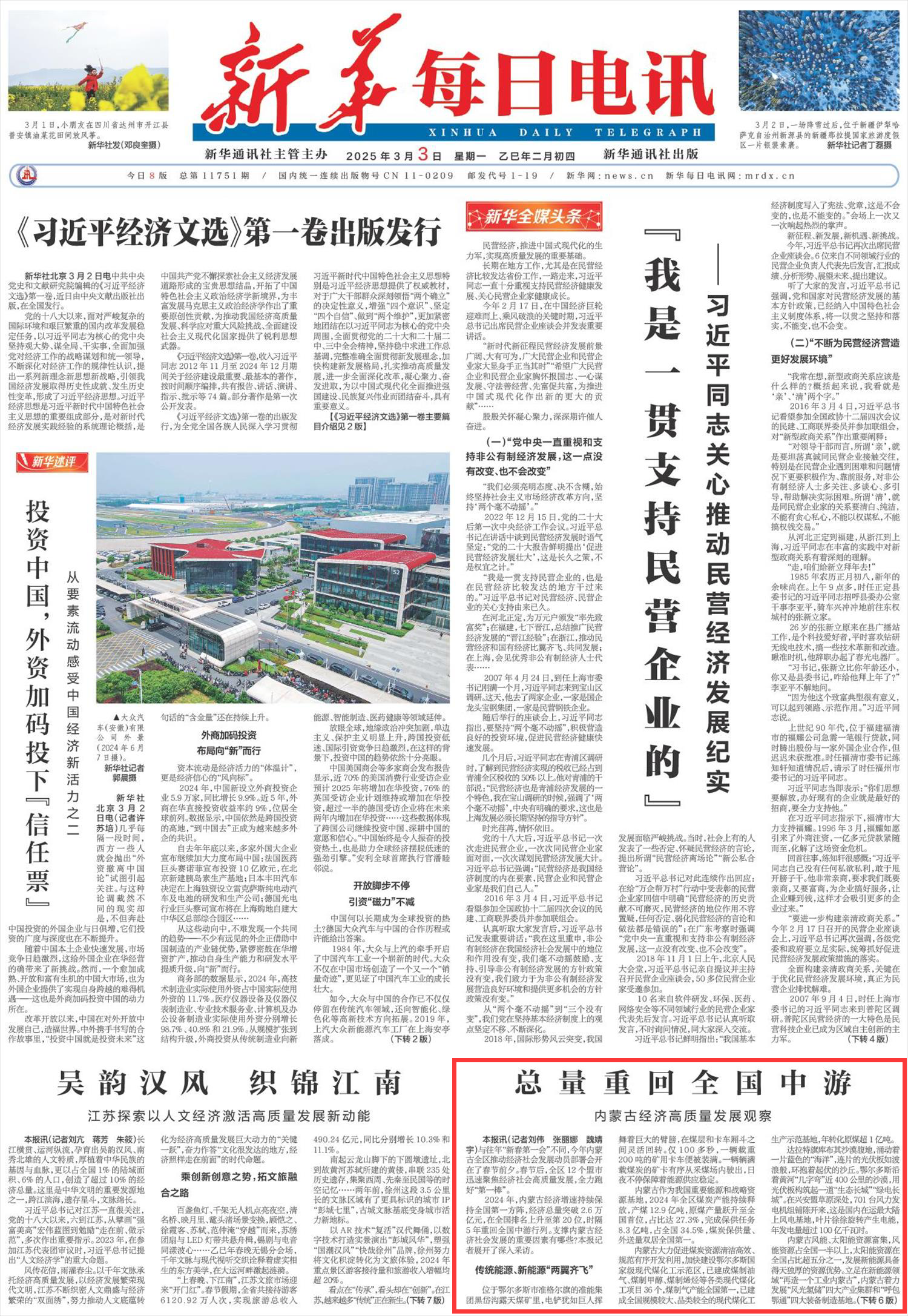 2025年3月3日,《新華每日電訊》第1版刊發(fā)題為《總量重回全國(guó)中游 內(nèi)蒙古經(jīng)濟(jì)高質(zhì)量發(fā)展觀察》的文章,報(bào)道了與往年“新春第一會(huì)”不同,今年內(nèi)蒙古全區(qū)推動(dòng)經(jīng)濟(jì)社會(huì)發(fā)展動(dòng)員部署會(huì)開(kāi)在了春節(jié)前夕。春節(jié)后,全區(qū)12個(gè)盟市迅速聚焦經(jīng)濟(jì)社會(huì)高質(zhì)量發(fā)展,全力跑好“第一棒”。2024年,內(nèi)蒙古經(jīng)濟(jì)增速持續(xù)保持全國(guó)第一方陣,經(jīng)濟(jì)總量突破2.6萬(wàn)億元,在全國(guó)排名上升至第20位,時(shí)隔5年重回全國(guó)中游行列。