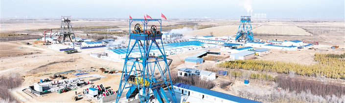 在距此90多公里的鄂托克前旗上海廟經(jīng)濟開發(fā)區(qū),能源主戰(zhàn)場的鷹駿一號煤礦項目建設(shè)同樣如火如荼?,F(xiàn)場大型機械來回穿梭,作業(yè)機械有序進行著主、副礦井的井筒掘砌工作。加工車間旁,焊接師傅正聚精會神地焊著鋼板接口,現(xiàn)場一片繁忙景象。