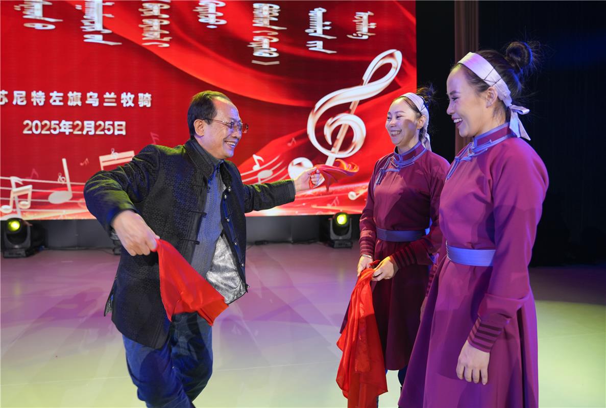 “如今,內(nèi)蒙古大地上活躍著75支像我們這樣的烏蘭牧騎隊(duì)伍,3000多名隊(duì)員每年演出超過1萬場(chǎng)。我們將牢記‘到人民中間去’,扎根生活沃土,深入挖掘內(nèi)蒙古這片廣袤土地上厚重的歷史文化資源,努力創(chuàng)作更多接地氣、傳得開、留得下的優(yōu)秀作品,為鑄牢中華民族共同體意識(shí)、促進(jìn)民族團(tuán)結(jié)進(jìn)步貢獻(xiàn)力量?!?/p>