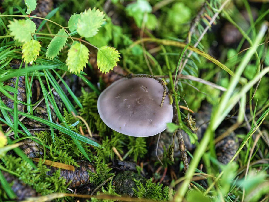 山間清風(fēng)裹挾著草木與泥土的濕潤(rùn)氣息撲面而來(lái),腳下的步道旁,松塔與翠綠的雜草間,不時(shí)冒出一朵朵野生蘑菇,宛如散落在林間的“小傘”,為靜謐的山野增添了幾分靈動(dòng)。