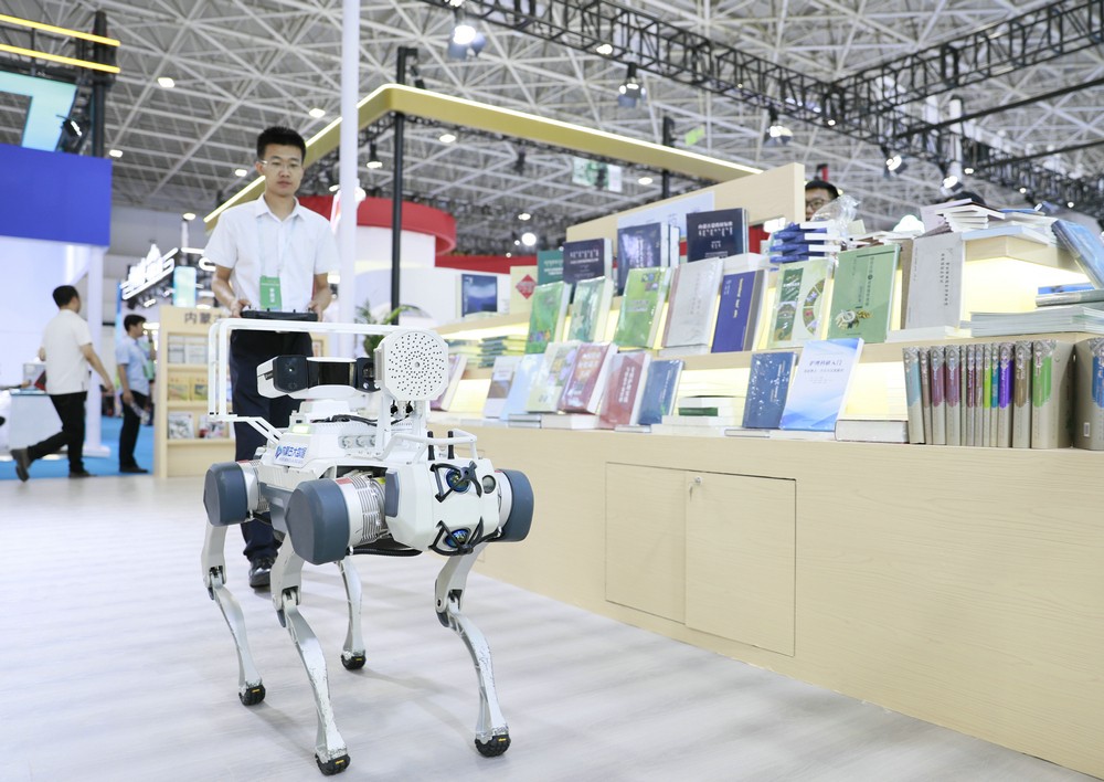 呼和浩特展區(qū)機(jī)器狗伴著愛樂樂團(tuán)的演奏翩翩起舞