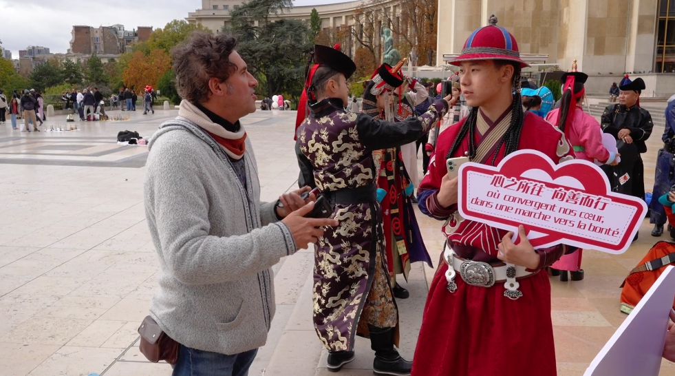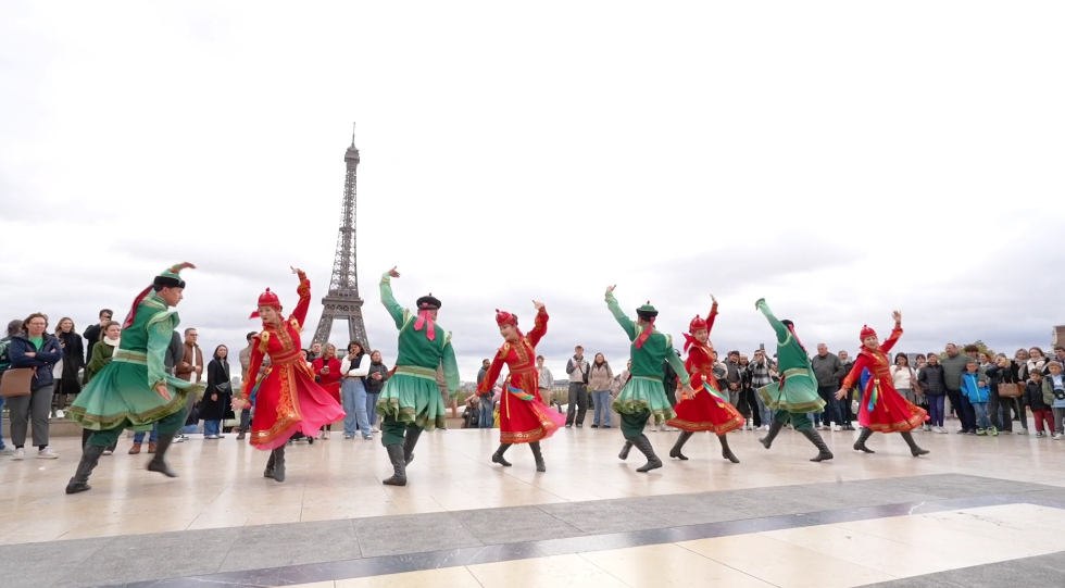 在法國(guó)巴黎市的夏約宮廣場(chǎng)、埃菲爾鐵塔、香榭麗舍大街、巴黎圣母院、凱旋門、國(guó)際大學(xué)城,比利時(shí)布魯塞爾市大廣場(chǎng)、藝術(shù)山等地,阿拉善的烏蘭牧騎演員開啟了一場(chǎng)場(chǎng)融合蒙古族華服走秀與快閃歌舞表演,“阿拉善在哪里?”“這服裝太酷了!”“怎么有萬(wàn)馬奔騰的感覺!”“想去看一看!”“這沙漠也太壯觀了!”快閃路演吸引了法國(guó)、比利時(shí)以及來(lái)自世界各地的游客駐足觀看,喝彩不斷,沉醉其中。