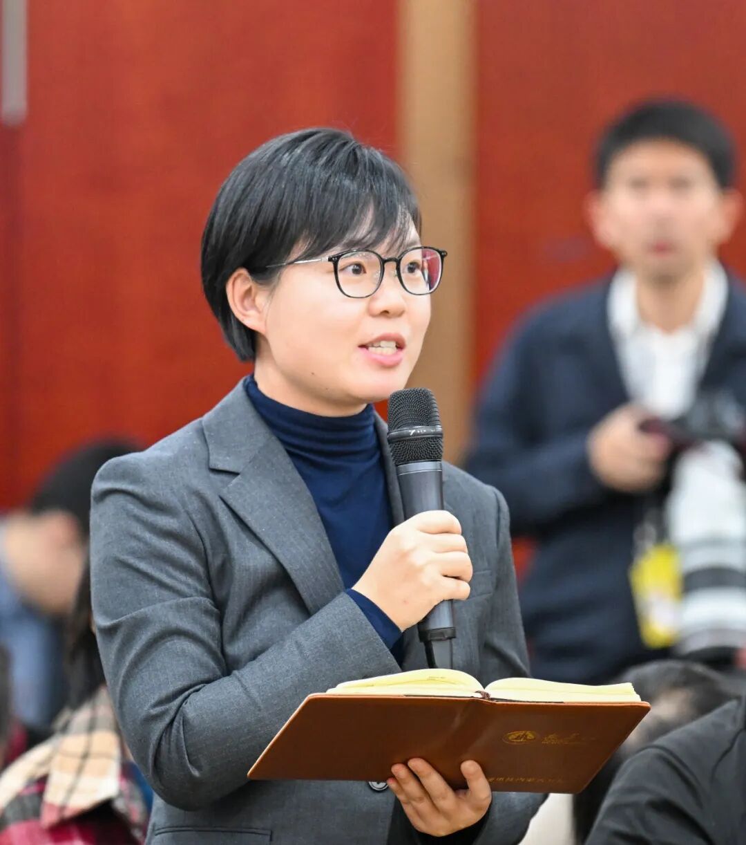 敖慧然代表回答光明日報記者提問。