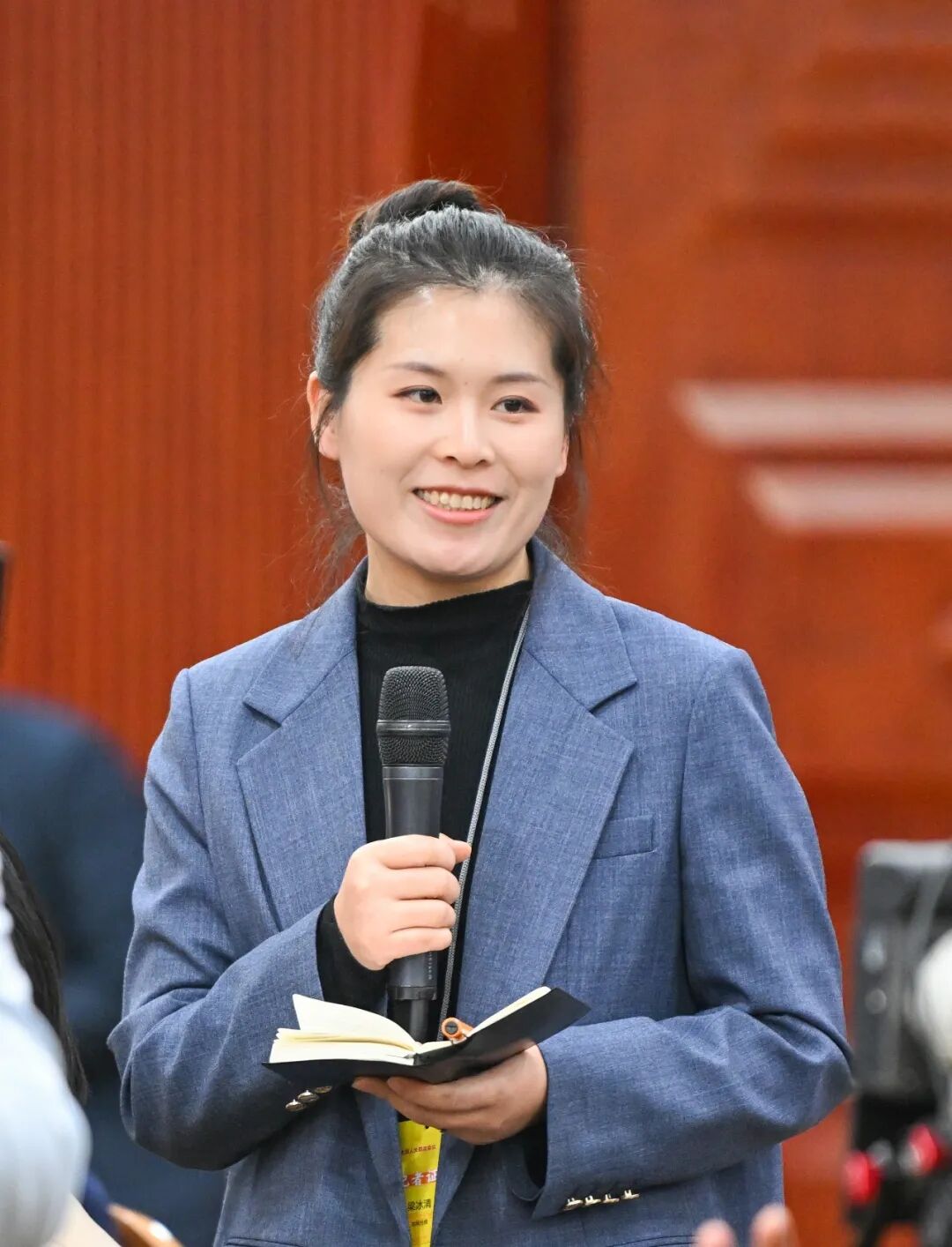 趙會杰代表回答《農(nóng)民日報》記者提問。