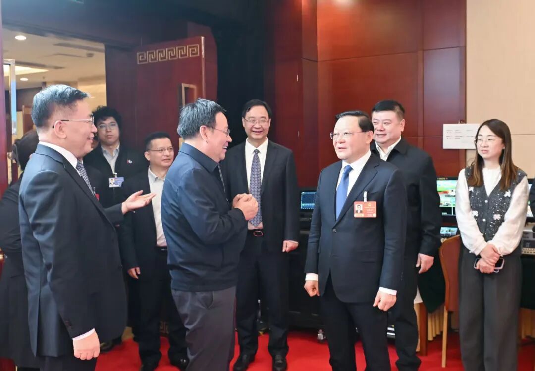 3月6日,自治區(qū)黨委書記、人大常委會主任王偉中,自治區(qū)黨委副書記、自治區(qū)人民政府主席包鋼在內蒙古代表團駐地看望慰問參加全國兩會報道的自治區(qū)媒體記者。