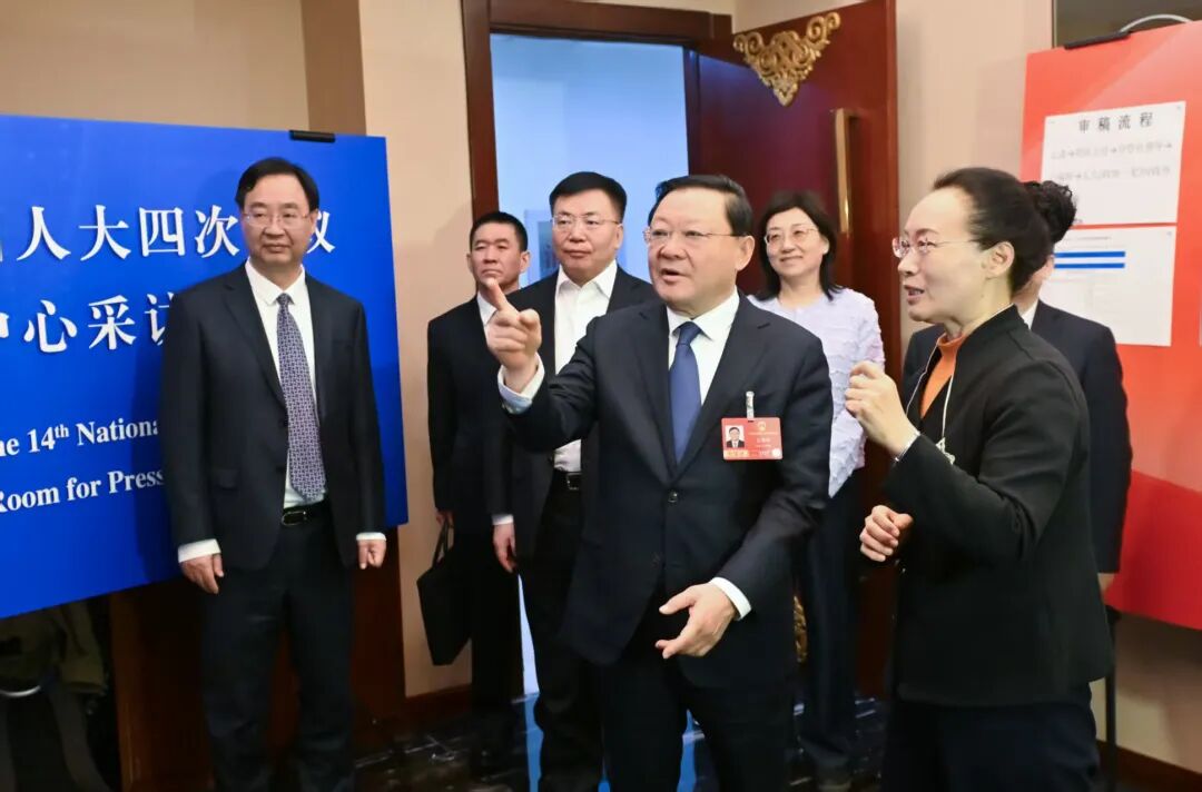 3月6日,自治區(qū)黨委書記、人大常委會主任王偉中,自治區(qū)黨委副書記、自治區(qū)人民政府主席包鋼在內蒙古日報社兩會報道工作間與記者代表親切交流,詳細了解宣傳報道情況。草原云·內蒙古新聞網記者 馬建兵 攝