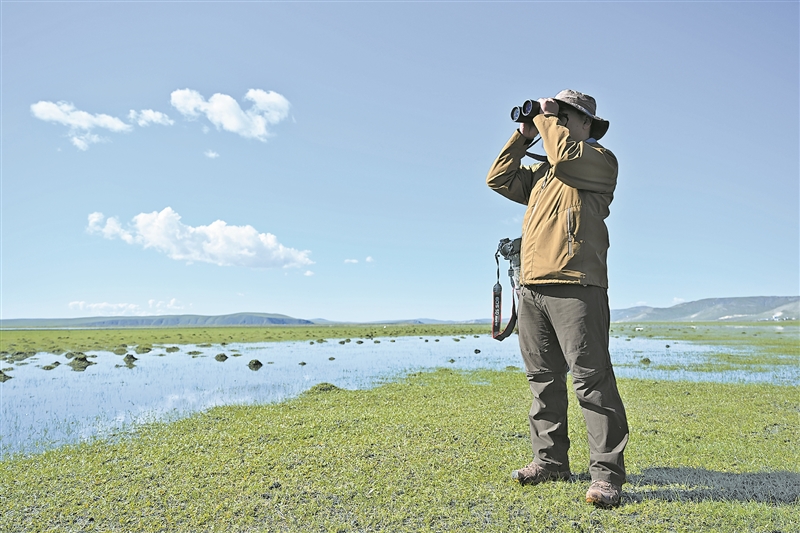 清晨,內(nèi)蒙古呼倫貝爾市額爾古納濕地涼意襲人。寶金財(cái)背著長焦鏡頭、胸前掛著高倍望遠(yuǎn)鏡開始了他一周兩次的樣線調(diào)查之旅。27歲的寶金財(cái)是額爾古納濕地自然保護(hù)區(qū)管理局的一名鳥類保護(hù)工作人員。