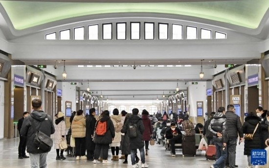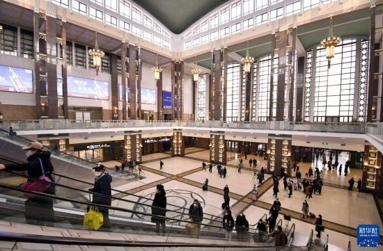 北京火車站在保持歷史原貌的前提下對候車大廳的裝飾、燈光等進(jìn)行了升級改造(2023年2月17日攝)。