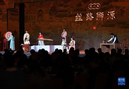 當(dāng)日,福建泉州石獅市舉辦“閩菜地標(biāo)美食城市”授牌暨“宋元海絲宴”推介儀式?!八卧=z宴”以南宋福建泉州石獅籍美食家林洪著作《山家清供》為還原藍(lán)本,兼收閩南名菜,集山珍、海味于一席,將菜品、宴席與宋元器皿、場(chǎng)景、樂(lè)曲、詩(shī)詞等融合,展現(xiàn)宋元時(shí)期世界海洋商貿(mào)中心獨(dú)特的美食文化。新華社記者 魏培全 攝