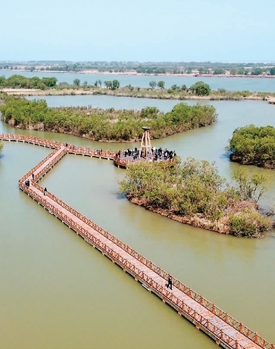 在山東黃河三角洲國家級自然保護(hù)區(qū)里,游客正在參觀。本報記者 劉發(fā)為攝